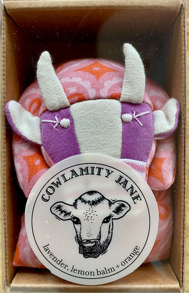 Cowlamity is filled with lavender, lemon balm and orange. Lavender, originally a Mediterranean shrub cultivated in Europe and the US for its aromatic flowers, is one of the queens of herbs. It relieves nervous tension, headaches and insomnia. Lemon balm is used for all sorts of nervous problems, melancholy and insomnia. Orange, which is an evergreen tree and originated in Asia, is an antiseptic aromatic.